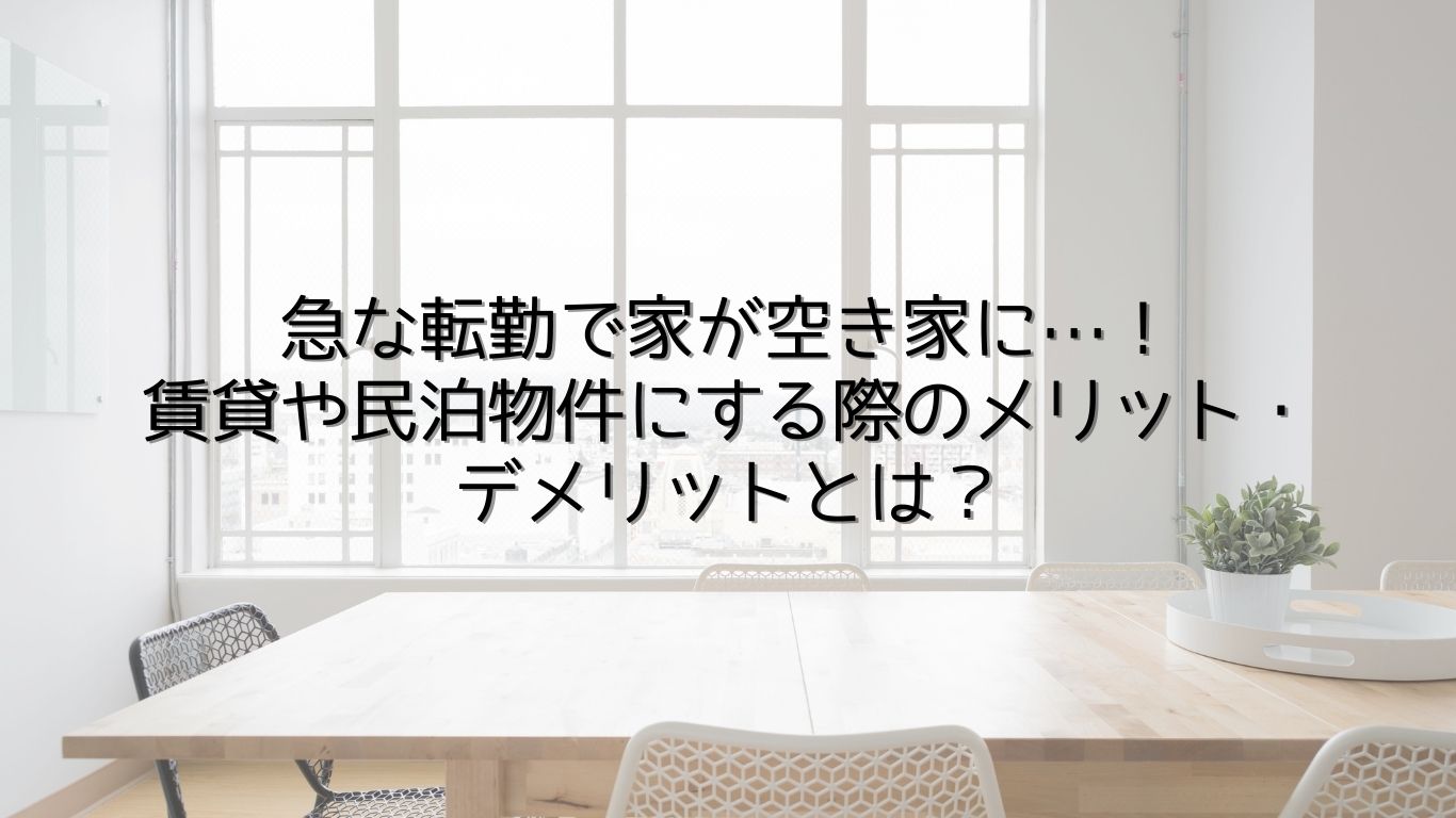 急な転勤で家が空き家に…!賃貸や民泊物件にする際のメリット・デメリットとは?