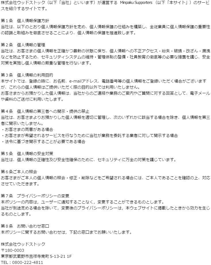 ©Minpaku Supporterss All Rights Reserved.